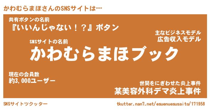 | ツイッター | かわむらまほさんのツイッターID『namakemono_kun』 |