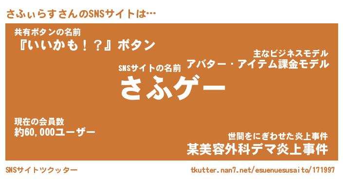 | 肩書あだ名 | 『さふぃらすCEO』『さふぃらす国家主席』 |