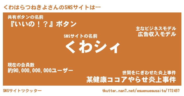 | ヒーロー風カッコイイあだ名 | 『スーパークワハラツネキヨ』 |