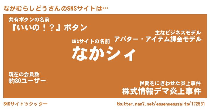 | 胡散臭い通販商品みたいなあだ名 | 『必ず成功する霊験あらたかなお札…その名も「なかむらしどう」』 |