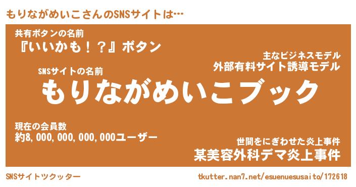 | 欧米人風あだ名 | 『マイケルもりながめいこ』 |