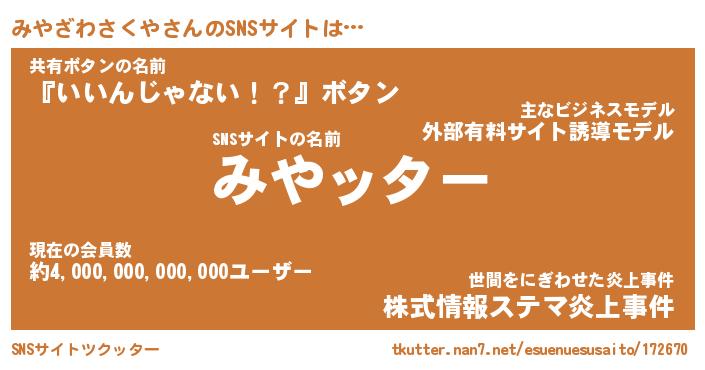 | 胡散臭い通販商品みたいなあだ名 | 『億万長者になれる霊験あらたかなお札…その名も「みやざわさくや」』 |