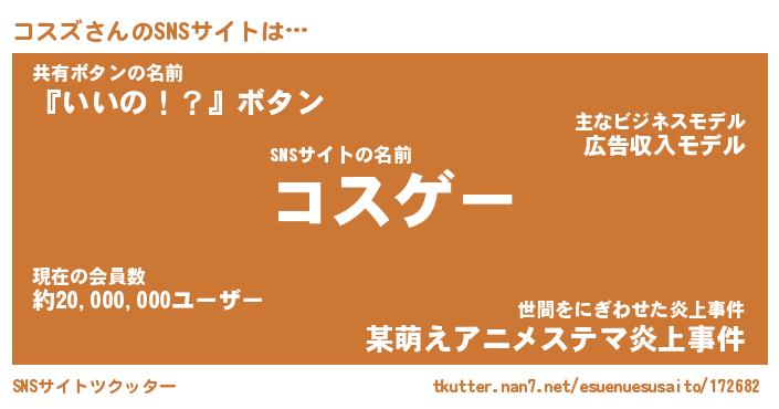 | ヒーロー風カッコイイあだ名 | 『スーパーコスズ』『ウルトラコスズマン』 |
