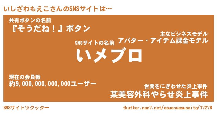 | 肩書あだ名 | 『いしざわもえこ社長』 |
