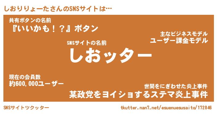 | 胡散臭い通販商品みたいなあだ名 | 『億万長者になれる霊験あらたかなお札…その名も「しおりりょーた」』 |