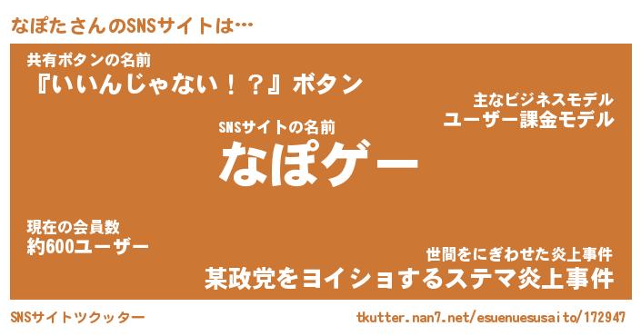 | 男性向けラノベタイトル風あだ名 | 『なぽたの憂鬱』 |