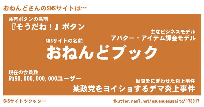 | ツイッター | おねんどさんのツイッターID『namakemono_kun』 |
