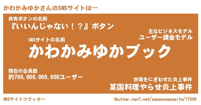 | 胡散臭い通販商品みたいなあだ名 | 『億万長者になれる水晶球…その名も「かわかみゆか」』 |