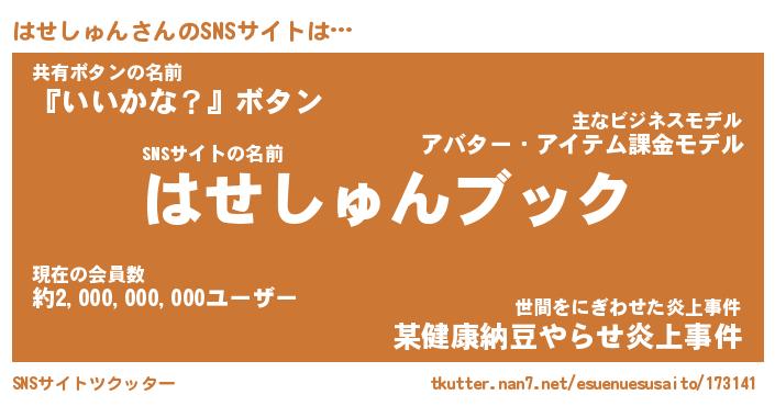 | 男性向けラノベタイトル風あだ名 | 『ハセシュンアートオンライン』 |