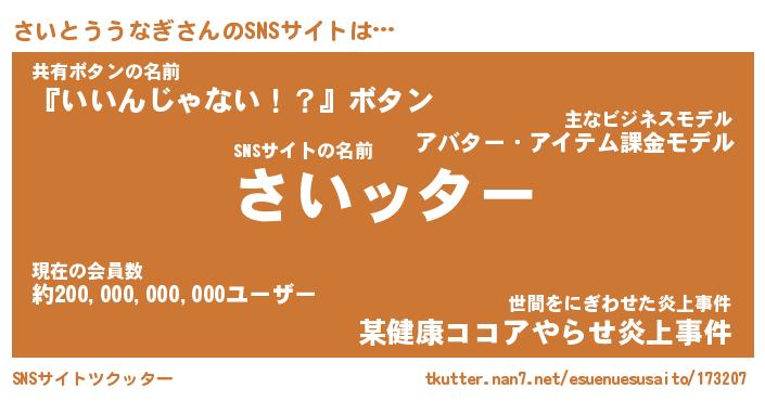 | 胡散臭い通販商品みたいなあだ名 | 『億万長者になれるブレスレット…その名も「さいとううなぎ」』 |