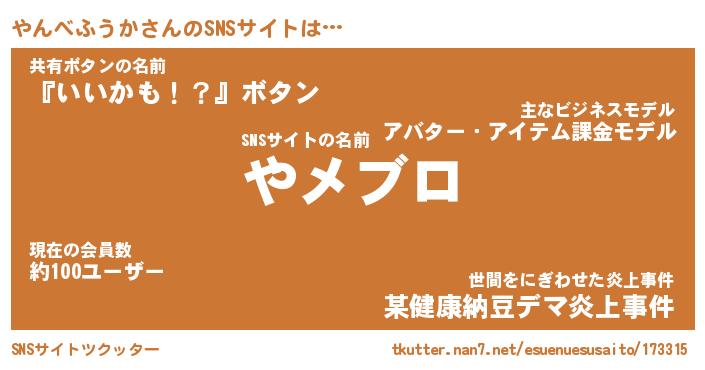 | 伝説のあだ名 | 『不死鳥のスナイパーやんべふうか』 |