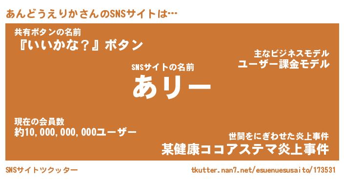 | 胡散臭い通販商品みたいなあだ名 | 『モテモテ間違いなし霊験あらたかなお札…その名も「あんどうえりか」』 |