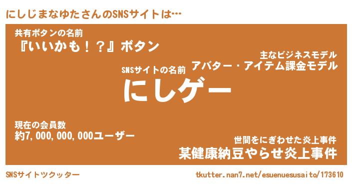 | ヘコむあだ名 | 『にしにー』『牛乳』『にしぷりん』 |