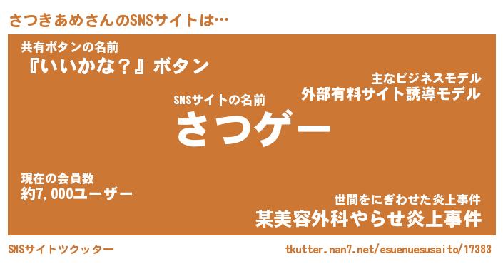 | 肩書あだ名 | 『さつきあめ店長』『さつきあめ総理大臣』 |