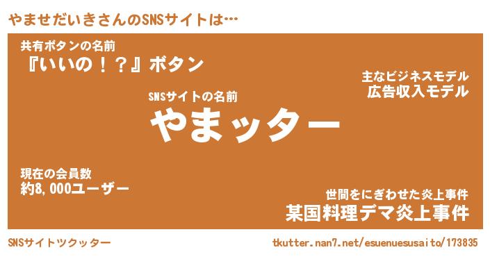 | 胡散臭い通販商品みたいなあだ名 | 『億万長者になれる霊験あらたかなお札…その名も「やませだいき」』 |