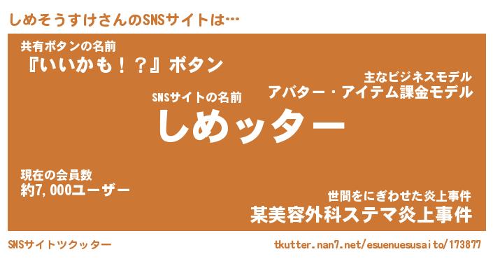 | 肩書あだ名 | 『しめそうすけCEO』『しめそうすけ団長』 |