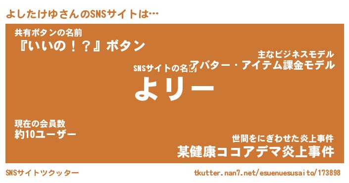 | ヘコむあだ名 | 『よしにー』『酢こんぶ』『よし太郎』 |