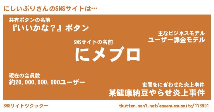 | 男性向けラノベタイトル風あだ名 | 『ニシイブリアートオンライン』 |