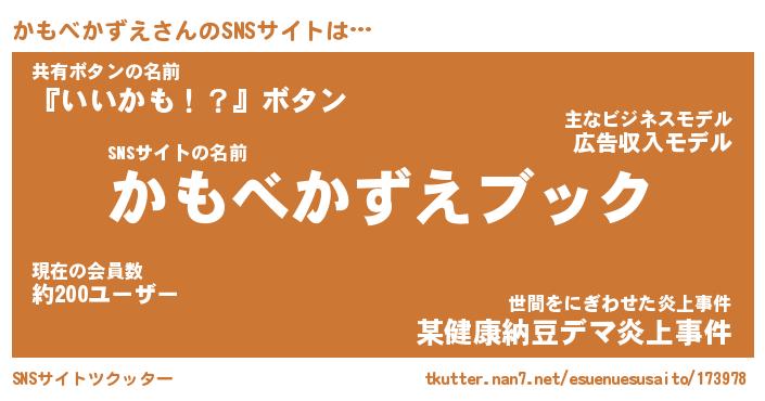 | 男性向けラノベタイトル風あだ名 | 『カモベカズエアートオンライン』 |