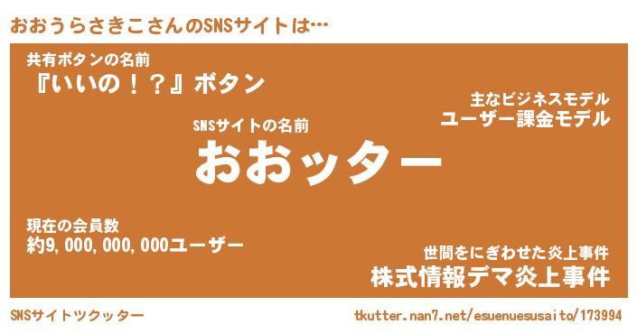 | 胡散臭い通販商品みたいなあだ名 | 『億万長者になれる霊験あらたかなお札…その名も「おおうらさきこ」』 |