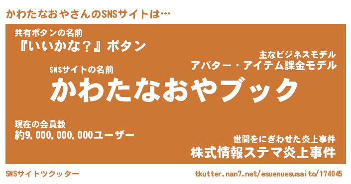 | 胡散臭い通販商品みたいなあだ名 | 『億万長者になれる霊験あらたかなお札…その名も「かわたなおや」』 |