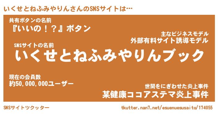 | 男性向けラノベタイトル風あだ名 | 『イクセトネフミヤリンアートオンライン』 |