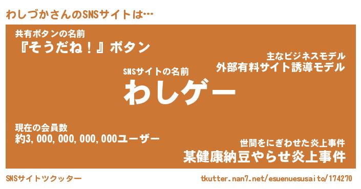 | ファンタジー風あだ名 | 『ワシフェル』『エターナルワシヅカー』 |