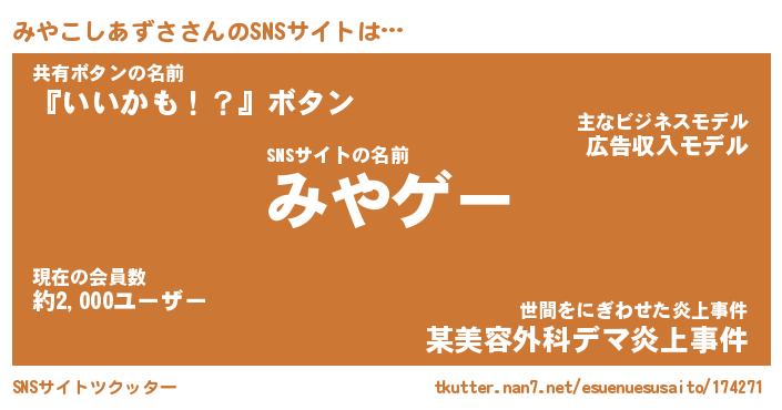 | 胡散臭い通販商品みたいなあだ名 | 『必ず成功するブレスレット…その名も「みやこしあずさ」』 |