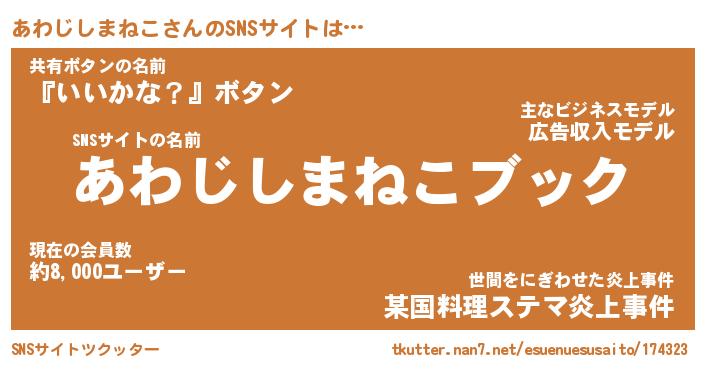 | 胡散臭い通販商品みたいなあだ名 | 『億万長者になれるブレスレット…その名も「あわじしまねこ」』 |