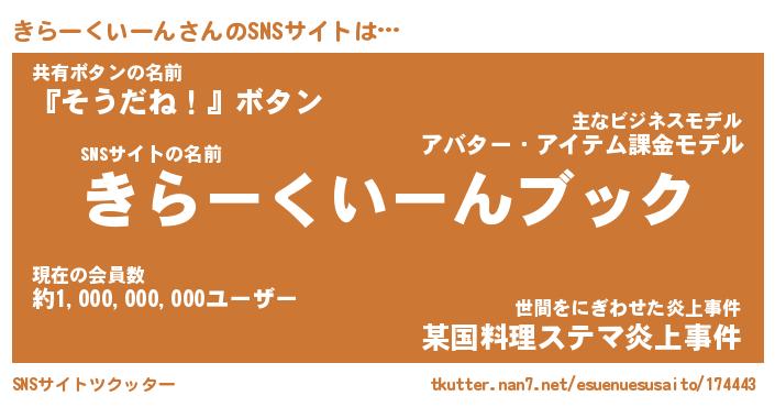 | 胡散臭い通販商品みたいなあだ名 | 『億万長者になれるブレスレット…その名も「きらーくいーん」』 |