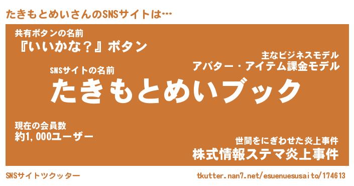 | 肩書あだ名 | 『たきもとめいCEO』『たきもとめい団長』 |