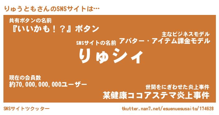 | 肩書あだ名 | 『りゅうとも社長』『りゅうとも国家主席』 |
