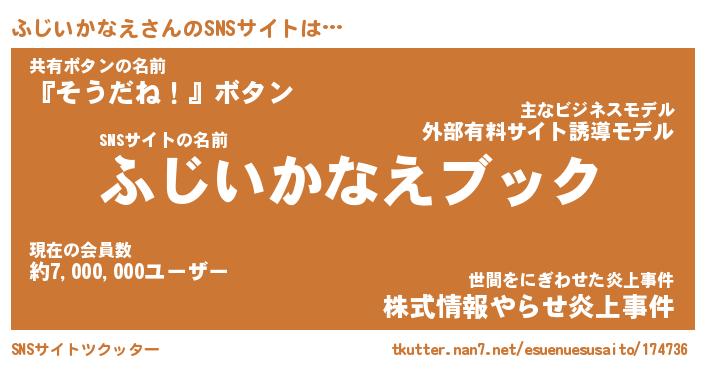 | 胡散臭い通販商品みたいなあだ名 | 『億万長者になれるブレスレット…その名も「ふじいかなえ」』 |