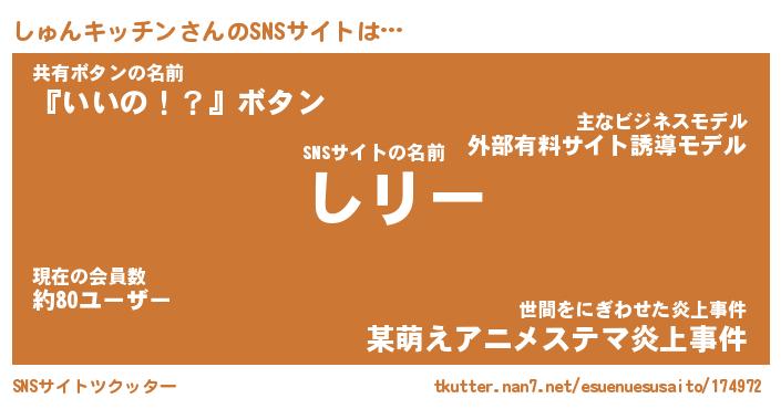 | 男性向けラノベタイトル風あだ名 | 『しゅんキッチンの憂鬱』 |