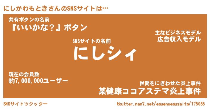 | 胡散臭い通販商品みたいなあだ名 | 『必ず成功する霊験あらたかなお札…その名も「にしかわもとき」』 |