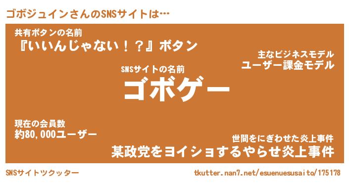 | 伝説のあだ名 | 『伝説のスナイパーゴボジュイン』 |