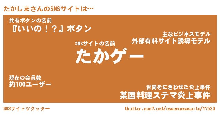| 男性向けラノベタイトル風あだ名 | 『たかしまの憂鬱』 |