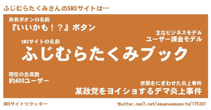 | 胡散臭い通販商品みたいなあだ名 | 『億万長者になれる水晶球…その名も「ふじむらたくみ」』 |