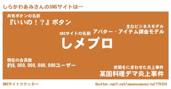 | 欧米人風あだ名 | 『マイケルしらかわあみ』 |