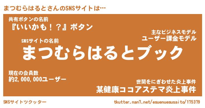 | 胡散臭い通販商品みたいなあだ名 | 『億万長者になれるブレスレット…その名も「まつむらはると」』 |