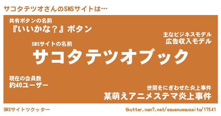 | 肩書あだ名 | 『サコタテツオCEO』『サコタテツオ班長』 |