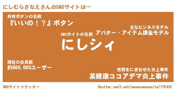| 肩書あだ名 | 『にしむらさなえ社長』 |
