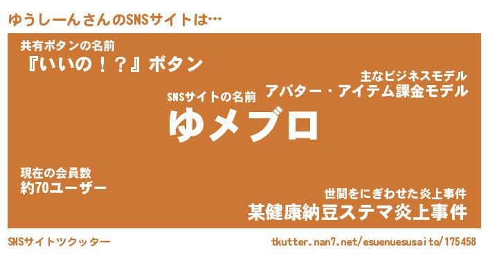 | 男性向けラノベタイトル風あだ名 | 『ユウシーンアートオンライン』 |