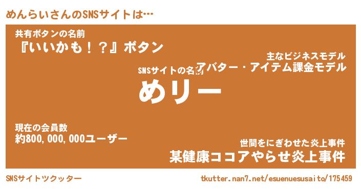 | 意味不明あだ名 | 『ペロリンめんらい』『永久保存めんらい』 |