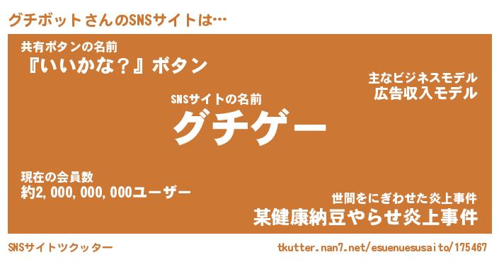 | 欧米人風あだ名 | 『マイケルグチボット』 |