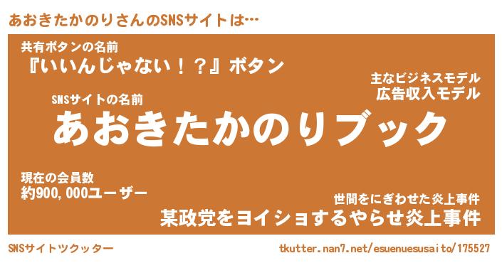 | 肩書あだ名 | 『あおきたかのり御曹司』 |