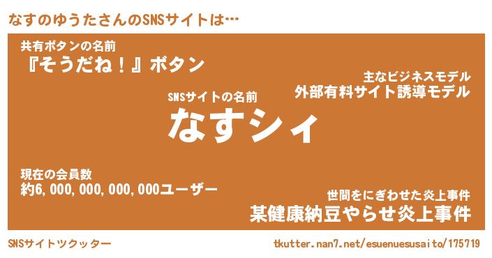 | ポケモン風あだ名 | 『ナスチュウ』『ナスノダネ』 |