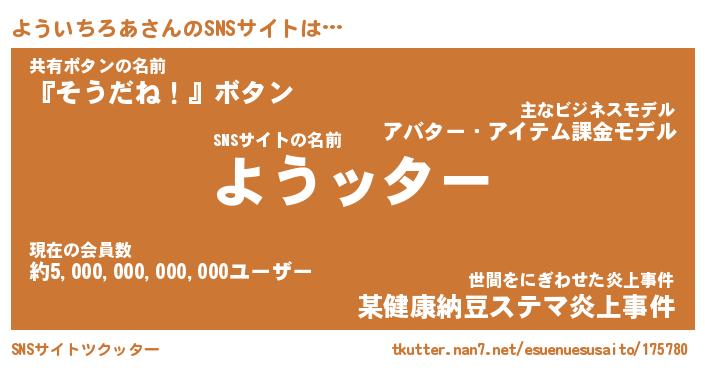 | 胡散臭い通販商品みたいなあだ名 | 『億万長者になれる霊験あらたかなお札…その名も「よういちろあ」』 |