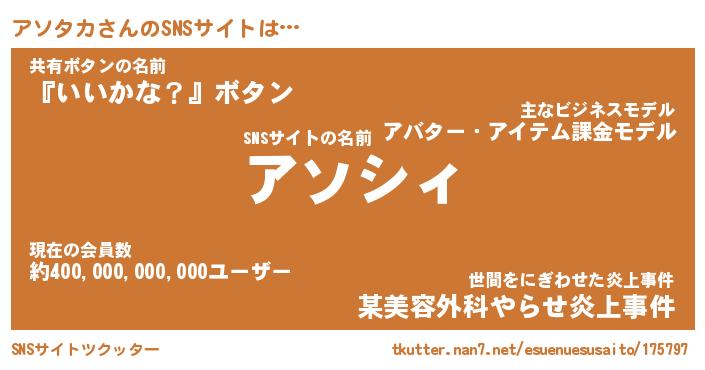 | 意味不明あだ名 | 『ペロリンアソタカ』『永久保存アソタカ』 |