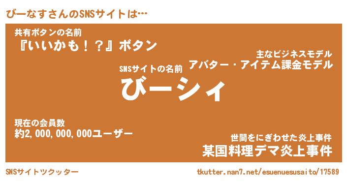 | 男性向けラノベタイトル風あだ名 | 『びーなすの憂鬱』 |